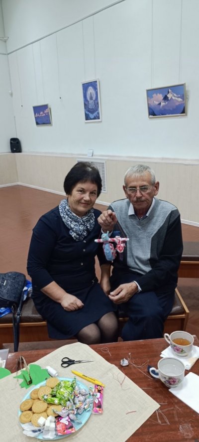 В теплой дружеской, почти семейной обстановке, за чашкой чая, в окружении выставки репродукций картин Николая Рериха, состоялся разговор о важном «Счастливая семья – сильное государство». Открыла мероприятие помощник Благочинного Ушачского района Анна Николаевна Пашкова, которая пожелала семьям крепости брака, взаимной любви и понимания, семейного благополучия, а также призвала к бережному отношению друг к другу и к укреплению семейных уз, в духе христианских ценностей и традиций. Семейные пары рассказывали об истории создания своих семей, о детях, внуках, семейных традициях, которые передались от бабушек-дедушек, родителей. В завершении разговора все присутствующие «украсили» дерево листочками, на которых написаны семейные ценности. А завершилась встреча мастер-классом, под руководством смотрителя Мугако В.К. пары сделали семейные обереги «Кукол-неразлучников».Молодые ребята с интересом слушали рассказы опытных семейных пар, а пока они мотали кукол, отвечали на вопросы викторины, вспоминали поговорки о семье.